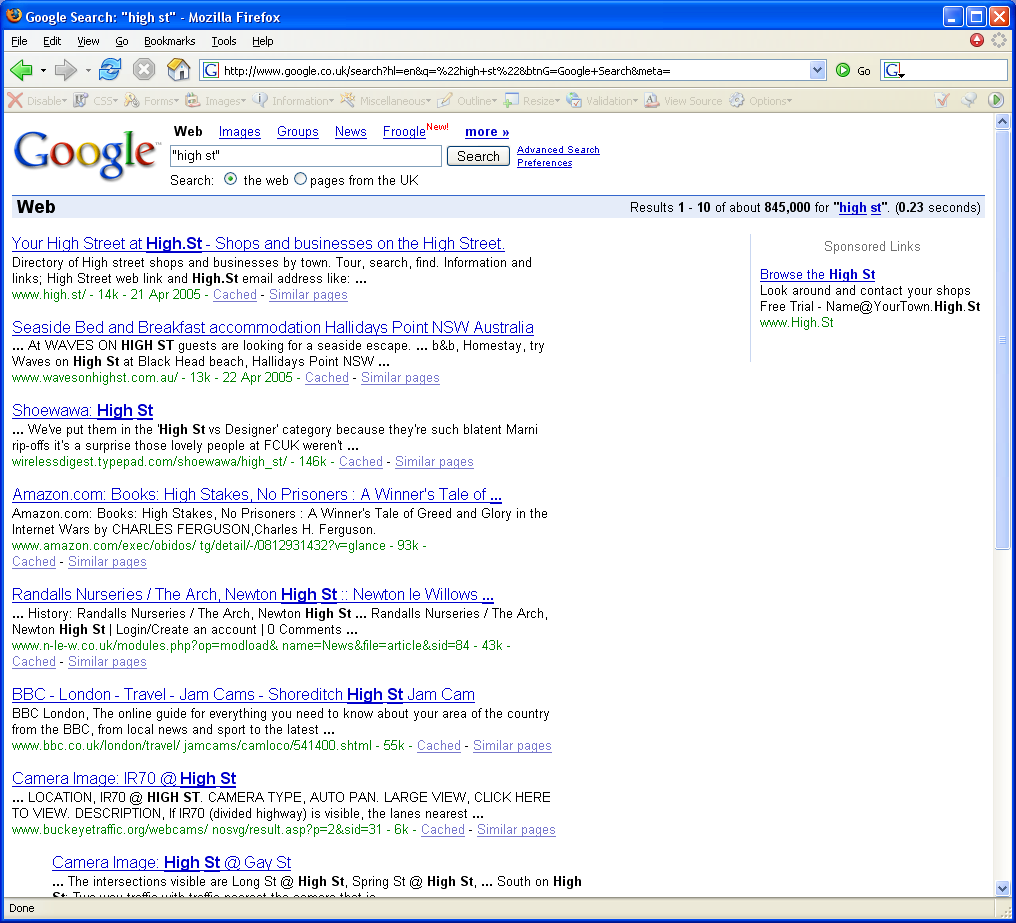 No. 1 search result* for "high st" on Google, Yahoo, Altavista and alltheweb. | ![]() |